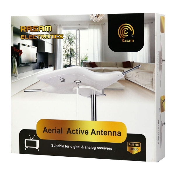 آنتن هوایی مدل S100 محصولی از برند معتبر رسام است که قابلیت دریافت سیگنال های آنالوگ و دیجیتال را دارا می باشد. این محصول با انواع تلویزیون های نسل قدیم و جدید سازگاری داشته و انرژی مورد نیاز آن از طریق برق شهری قابل تامین می باشد و ولتاژ ورودی به آن معادل ۲۲ ولت است. در ساخت محصول از پلاستیک استفاده شده و تعداد خروجی آن یکی است، بعلاوه تعداد دستگاه های پشتیبانی شده توسط آن به دو عدد می رسد. آنتن رسام گیرنده باندهای FM ،UHF و VHF می باشد و به لطف مجهز بودن به تقویت کننده سیگنال، شبکه های رادیویی و تلویزیونی با کیفیت صدای مطلوب و وضوح مناسب شنیده و نمایش داده می شوند. به عنوان آخرین ویژگی های S100 می توان به بوستر با کابل متصل ۷۵ سانتی متری اشاره نمود که تاثیر به سزایی در افزایش کیفیت سیگنال های دریافتی دارد.
