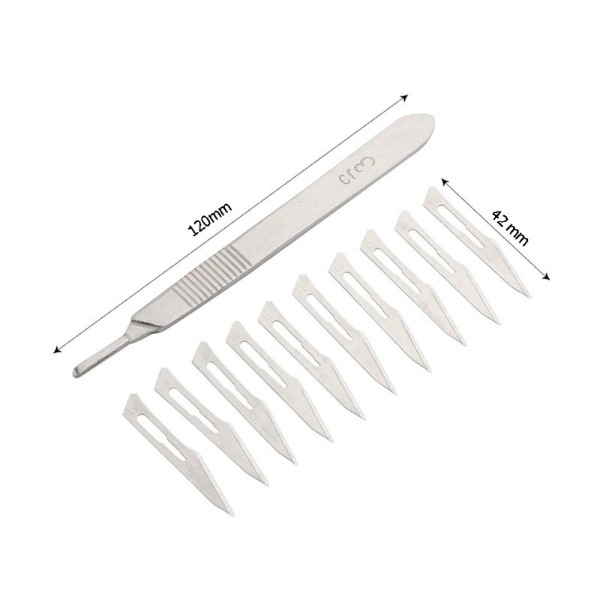 شامل یک عدد کاتر بیستوری برداشتن IC با تیغ مدل S3 طراحی ارگونومیک و ضد لغزش دسته با بهره گیری از استیل ضد زنگ طول دسته برابر با ۱۲ سانتی متر، ارائه ۱۰ عدد تیغ کد ۱۱ با برندگی بالا همراه محصول مناسب برای پاک کردن چسب اضافی باقی مانده روی تراشه، برداشتن IC، حکاکی شیشه و …
