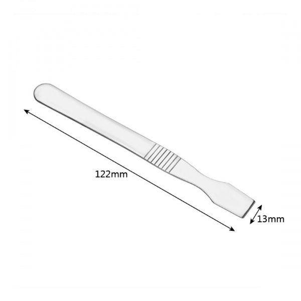 دارای بدنه ای از جنس استیل ضد زنگ با ابعادی معادل ۱۲۲*۱۳ میلی متر مقاوم در برابر عواملی همچون زنگ زدگی و خوردگی، ضخامت بسیار کم قابل استفاده به عنوان کاردک شابلون و خمیر قلع، باز کردن قاب و ...