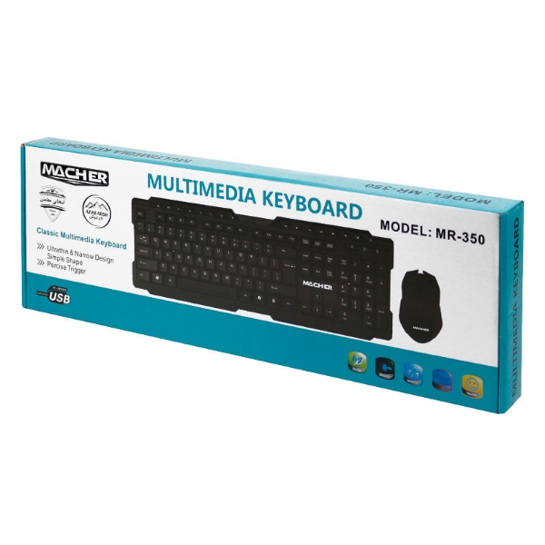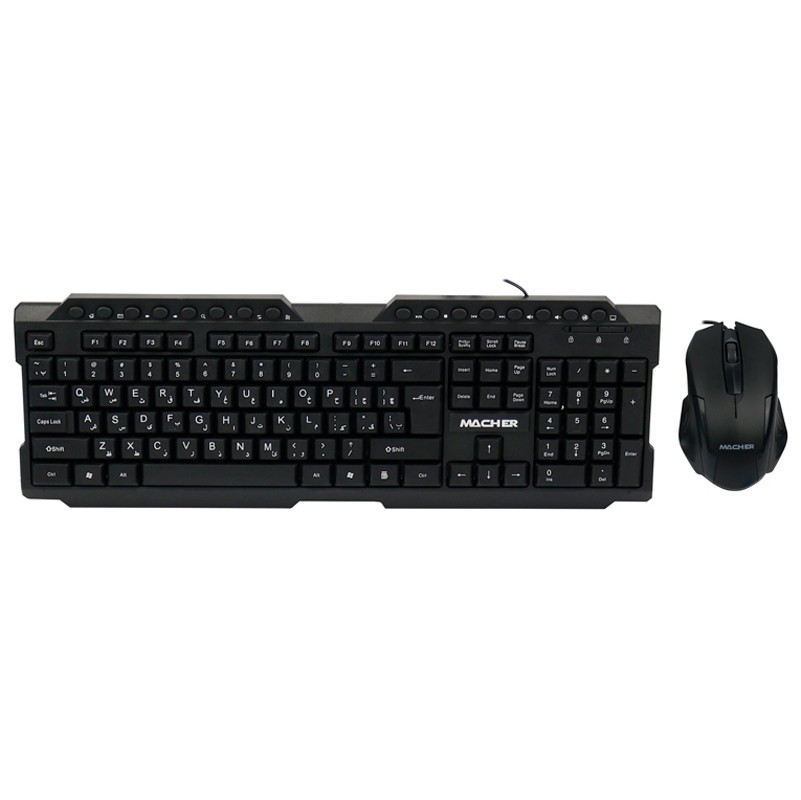 نوع محصول ست موس و کیبورد تعداد کلیدها 120 عدد نوع اتصال با سیم USB دقت 1000DPI رابط USB مقاوم در برابر رطوبت دارد حروف حک شده فارسی دارد اتصال با سیم با سیم استاندارد ROHS / CE نشانگر LED دارد نوع حسگر ماوس اپتیکال عمر کلید ها حدود 10 میلیون بار کلیک قابلیت تنظیم ارتفاع دارد تعداد کليدهای ماوس 3 عدد عمر ضربه پذیری موس حدود 10 میلیون بار کلیک کلیدهای مولتی مدیا دارد